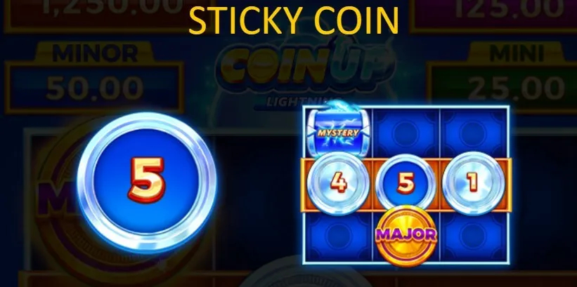 - ∙ 黏幣符號會在主遊戲中隨機出現,並持續黏在捲軸上,直到觸發獎金遊戲。