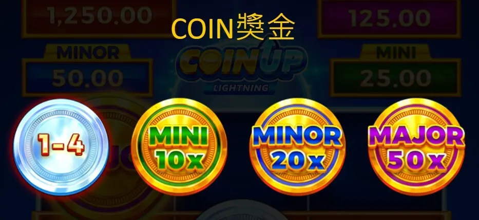 - ∙ Coin符號的獎勵範圍為賭注的1到4倍,根據掉落數量計算獎金。